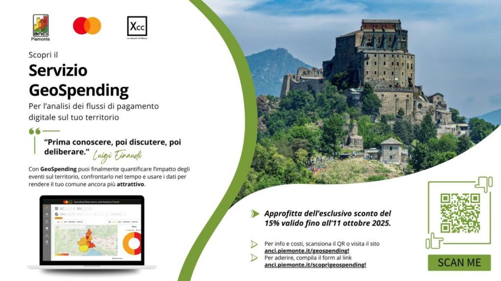 15 Settembre 2025ANCI Piemonte lancia GeoSpending con XCC e Mastercard: i Comuni piemontesi al centro di una rivoluzione nella conoscenza dei flussi di spesa.